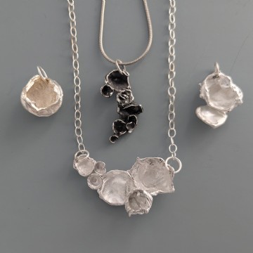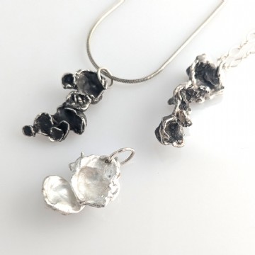 You'll learn how to melt sterling silver until it is liquid in a ceramic melting dish, and pour it into water to create unique forms reminescent of shells, seaweed, barnacles, and droplets. Each water casting is different, you never get exactly the same thing twice! You'll learn how to drill a hole, attach a jump ring, and apply an oxidizing patina if you like the darkened silver look. Complete the piece by polishing up the highlights and attaching your chain! Like all of our classes, we'll use home friendly tools and materials, so you can keep practicing at home.